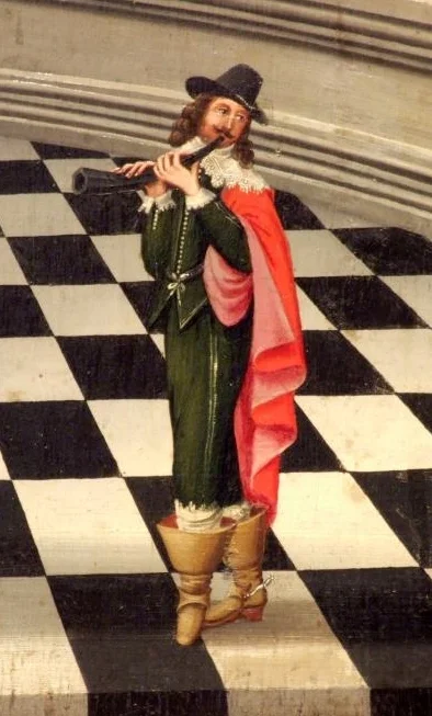 We have come a long way from the Cavaliere del Cornetto to this musician blowing on his "sausage", but, we are certainly nearer to Schwarz' "poor white trash among musical instruments." As an instrument of the Stadtpfeiffer, played in all likelihood ever more poorly, the cornetto lasted until at least 1840, when Jean Georges Kastner, the French composer and musicologist, heard one in Stuttgart: